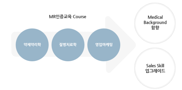 MR인증교육은 MR에게 반드시 필요한 약제약리학, 질병치료학, 영업직무 등과 같은 전문지식을 온라인을 통하여 서비스하고 있습니다.