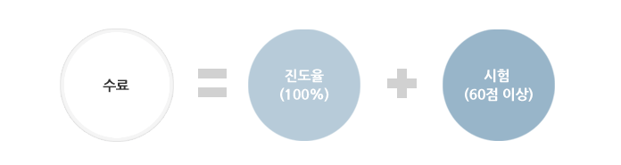 2. 각 과정 모두 진도율 100% 달성 후, 시험 60점 이상 득점 시 수료 가능합니다.